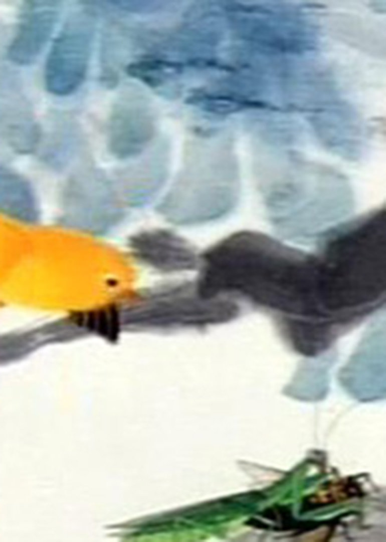螳螂捕蝉,枝头,树叶,举刀,爬动,黄雀,鸣叫